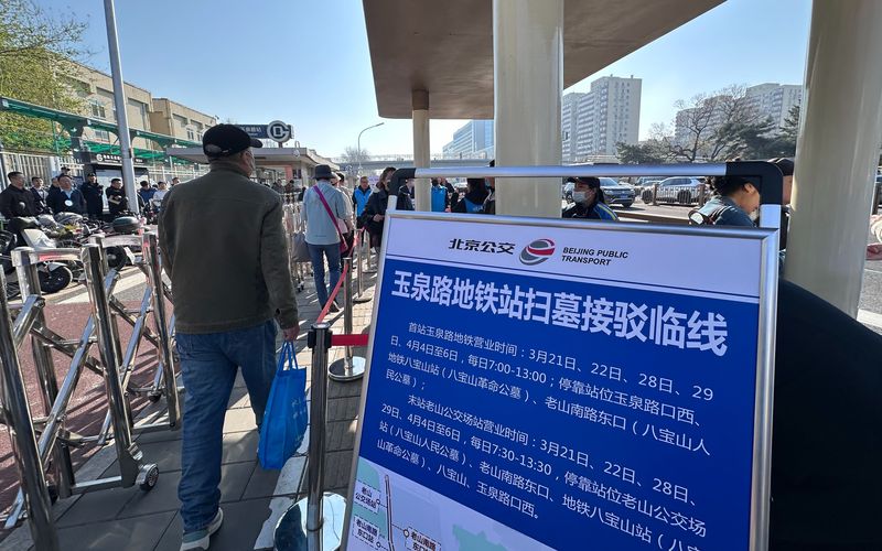 新京报讯(记者裴剑飞)今天(4月4日)是晴朗假期首日,北京迎来祭扫出行岑岭。今天早上,记者在玉泉路地铁站外看到,由于八宝平地铁站封站,北京公错杂团在玉泉路地铁站加开省墓接驳线,逍遥公众出行需求。