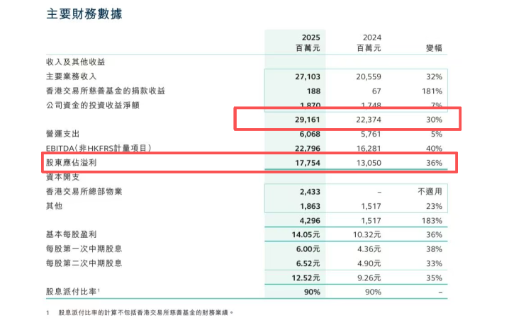 官方年报线路,2025年港交所完毕营业收入292亿港元、净利润178亿港元,相较于2024年(营业收入174.47亿港元、净利润130.50亿港元),净利润同比提高36%;与2023年(营业收入205.16亿港元、净利润118.62亿港元)比较,净利润同样同比提高36%,创下近三年岁迹峰值。