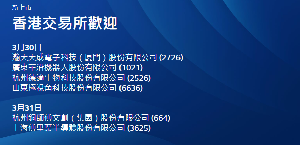 3月30日,华沿机器东谈主、德适生物、瀚天天成、极视角四家企业集体鸣锣上市,再现阛阓吵杂征象。