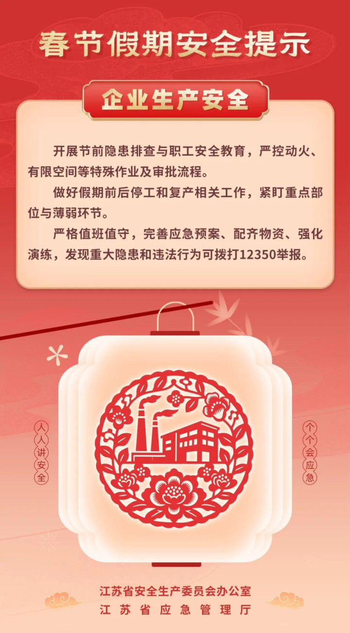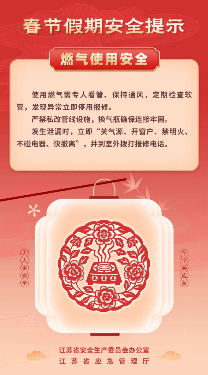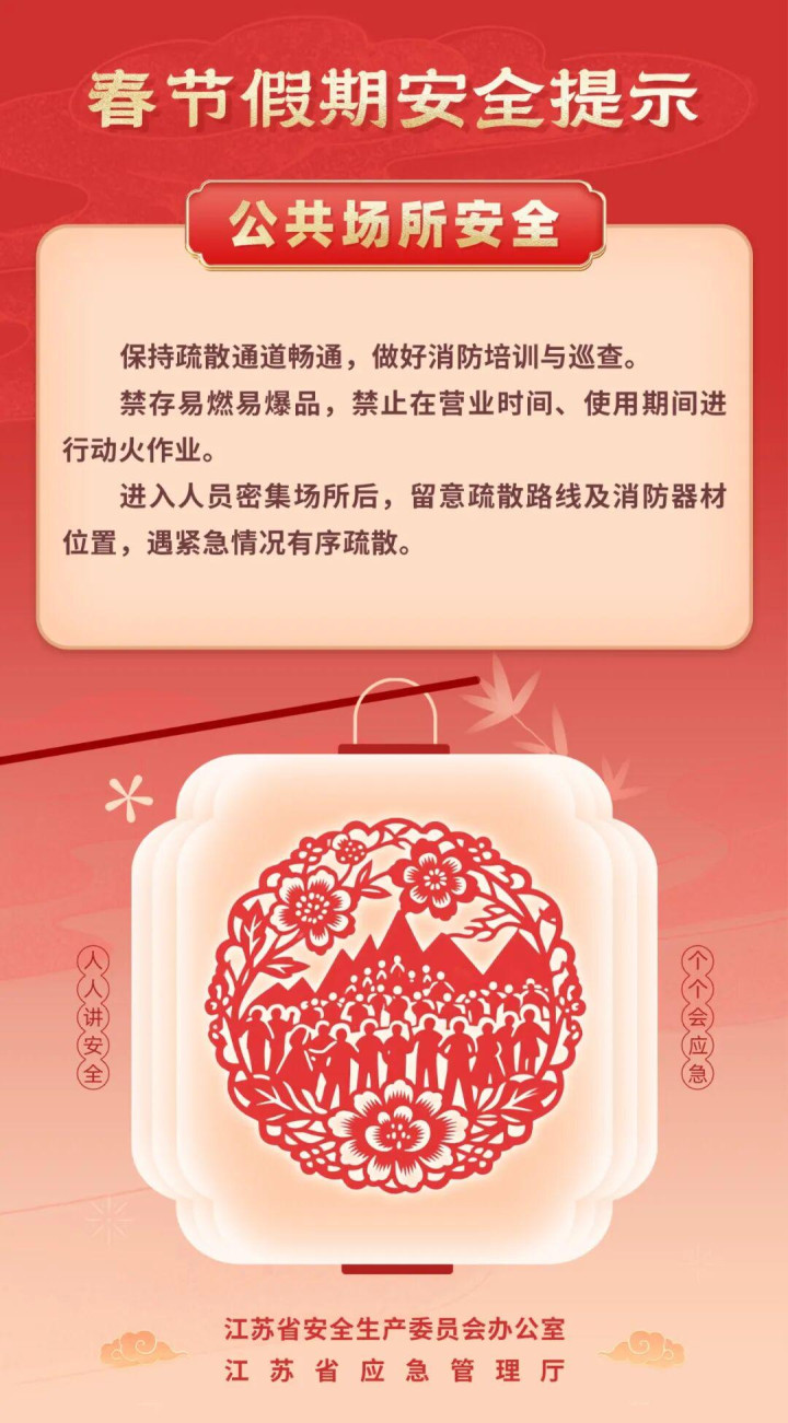 开云app 江苏省安委办、省救急厅发布春节假期安全辅导