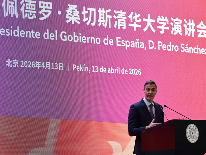 4月13日,访华的西班牙首相桑切斯参访北京清华大学并发扮演讲
