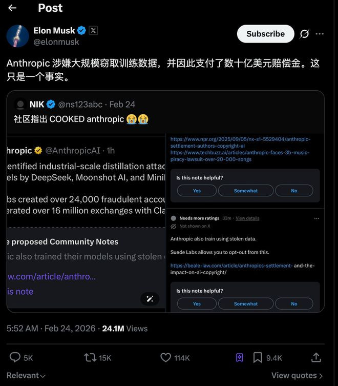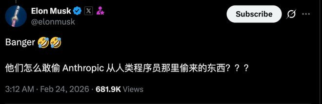 埃隆·马斯克(Elon Musk)在 X 上的嘲讽最具代表性:“他们若何敢偷 Anthropic 从东谈主类局面员那里偷来的东西?”