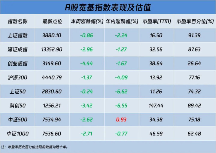 本周(3月30日-4月3日)A股宽基指数合座呈现“普跌+格调割裂”的花式。指数看着没跌几许(上证50微跌0.24%),但账户可能幸好很惨(创业板一周累跌4.44%),这可能即是本周A股的“慈祥一刀”了。