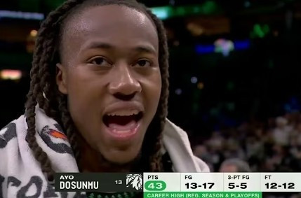 说念苏姆:真理超卓。就像我说的,能打季后赛是我的福泽,能打季后赛是我的侥幸。这是我的欣喜起源。也像我说的,这是我儿时的梦念念。